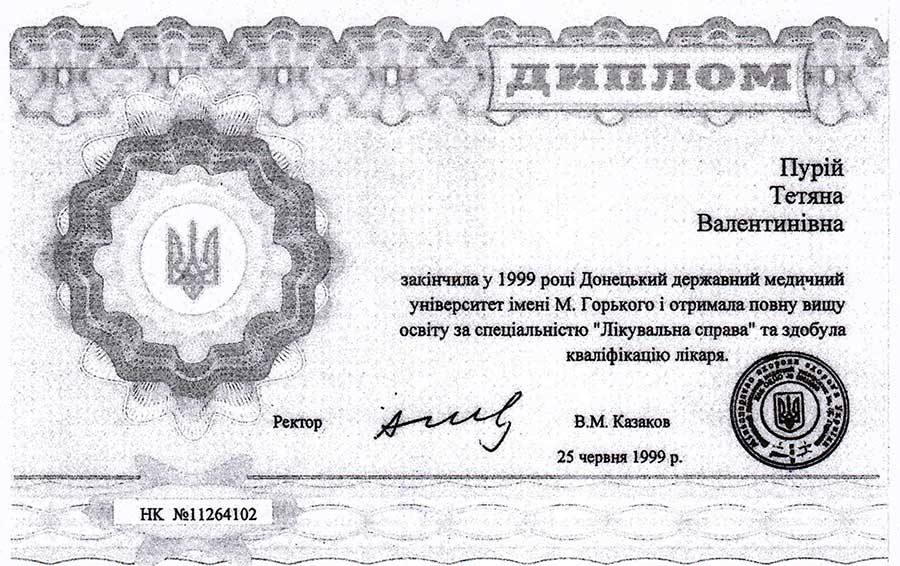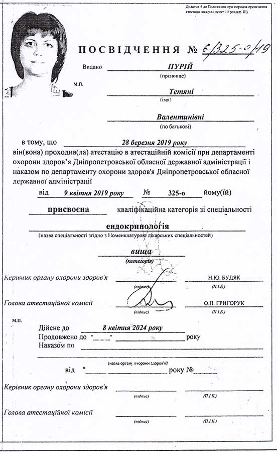 Лікар-ендокринолог вищої категорії Пурій Тетяна Валентинівна