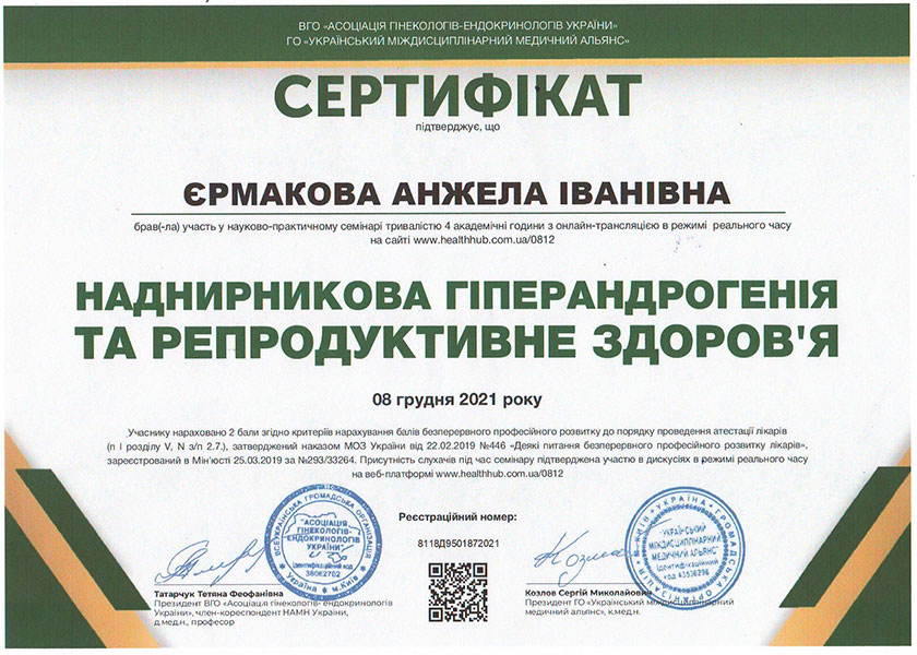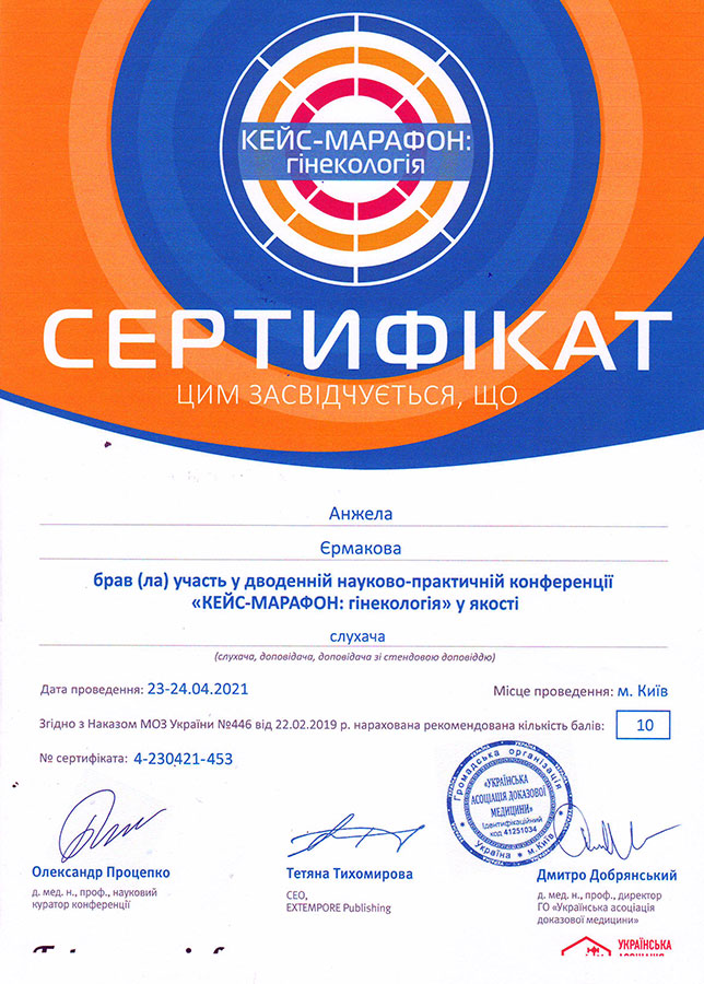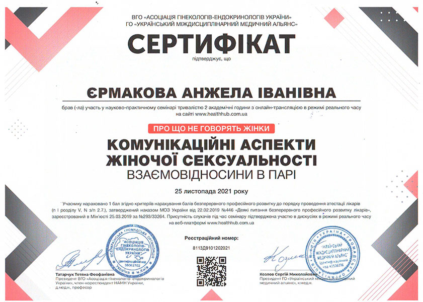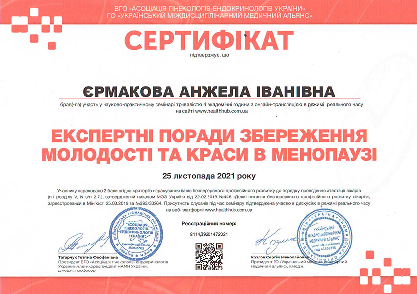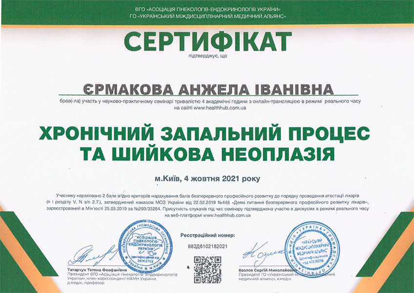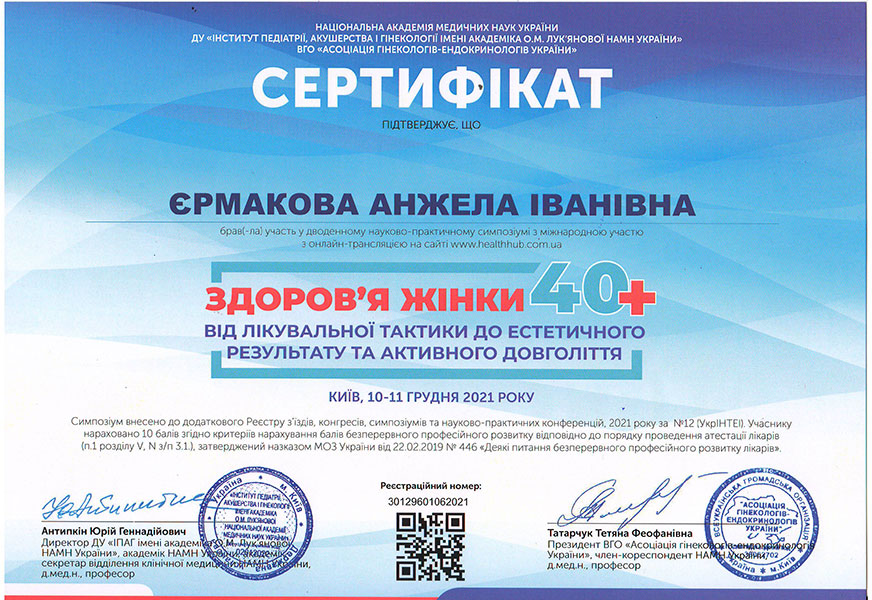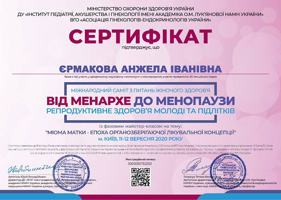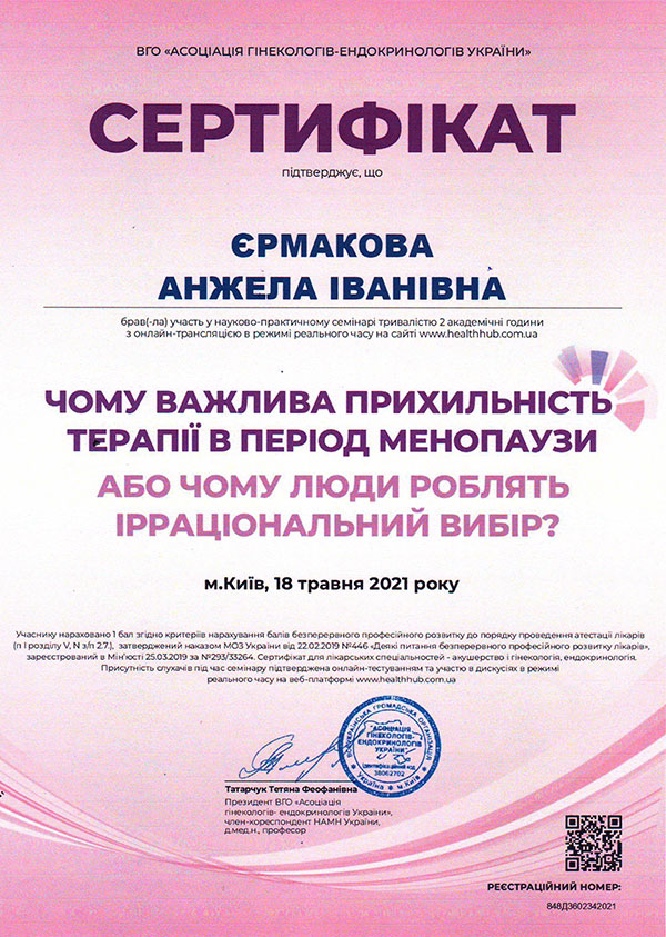 Лікар-гінеколог Єрмакова Анжела Іванівна