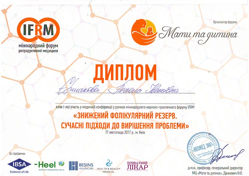 Постійний учасник науково-практичних конференцій вітчизняного та міжнародного рівня, майстер-класів, тренінгів. Член Асоціації гінекологів - ендокринологів України. |