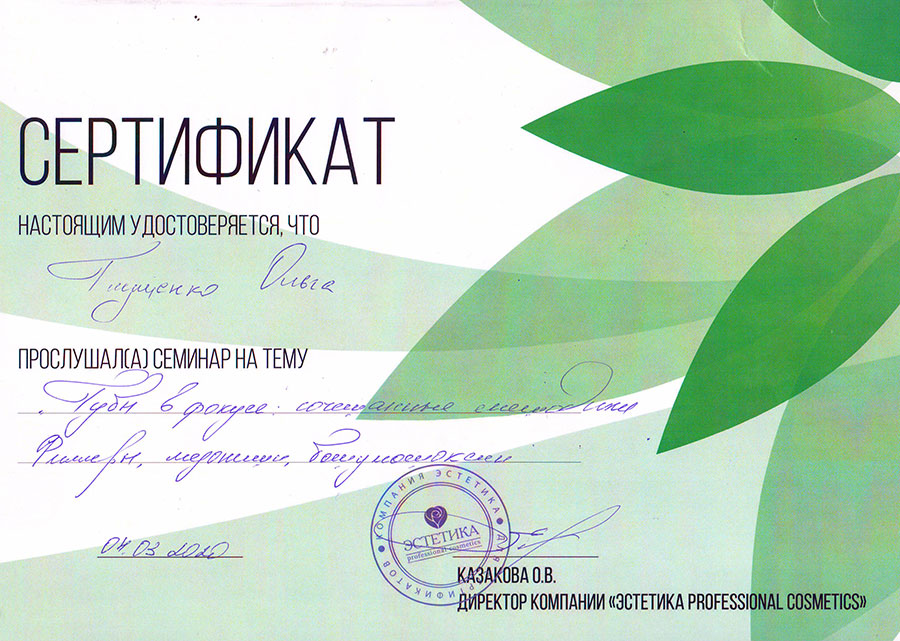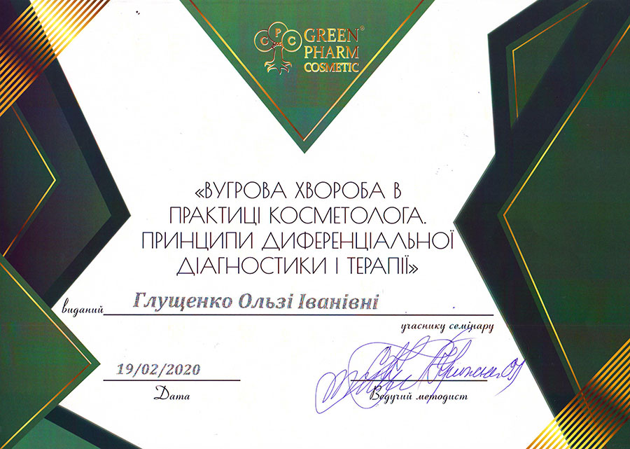 Залиште, будь ласка, відгук про прийом у лікаря-косметолога Глущенко Ольги Іванівни: