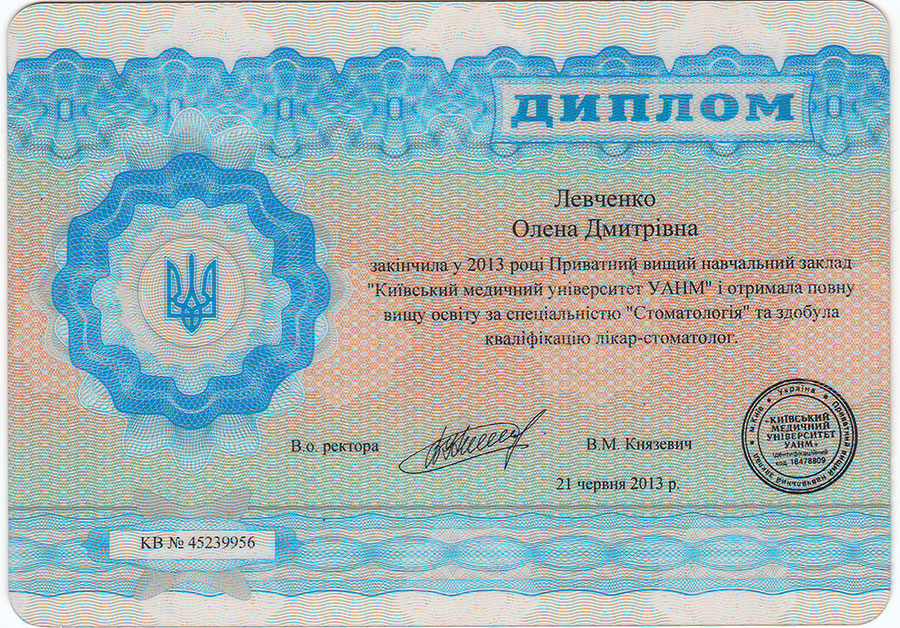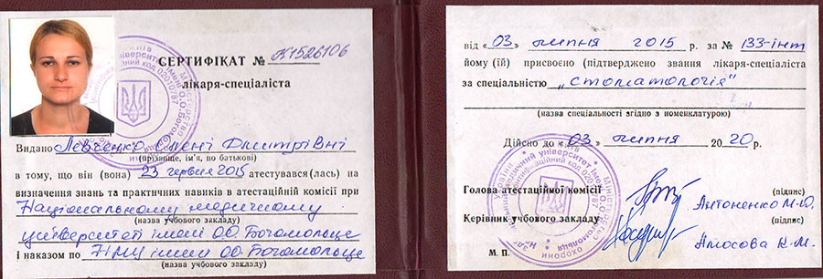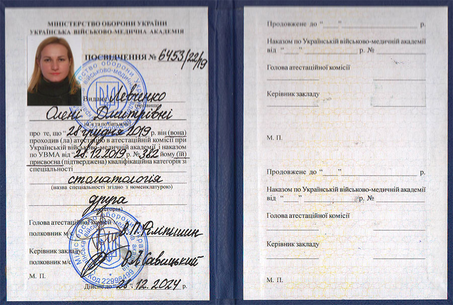 Лікар - Стоматолог Левченко Олена Дмитрівна
