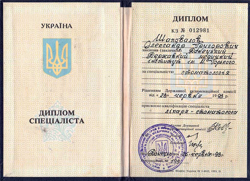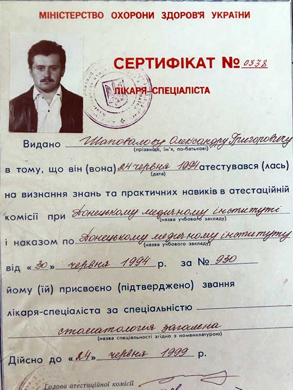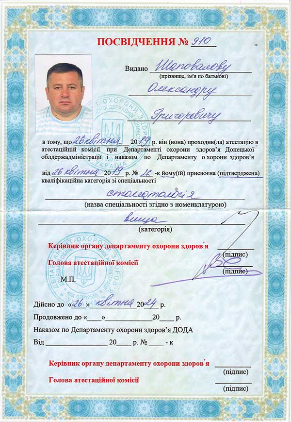 Лікар-стоматолог вищої категорії Шаповалов Олександр Григорович