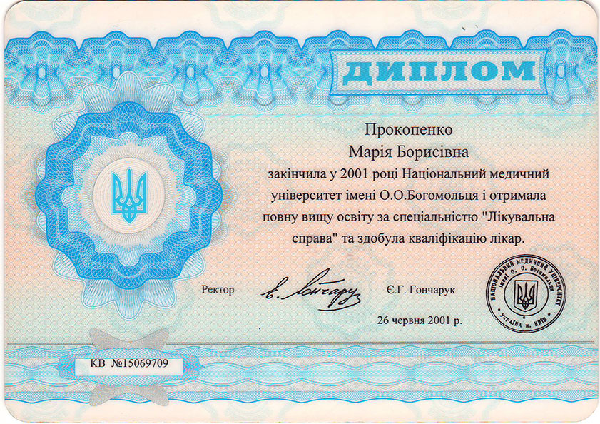 - • 1995 — 2001 — НМУ ім. О. О. Богомольця, лікувальна справа