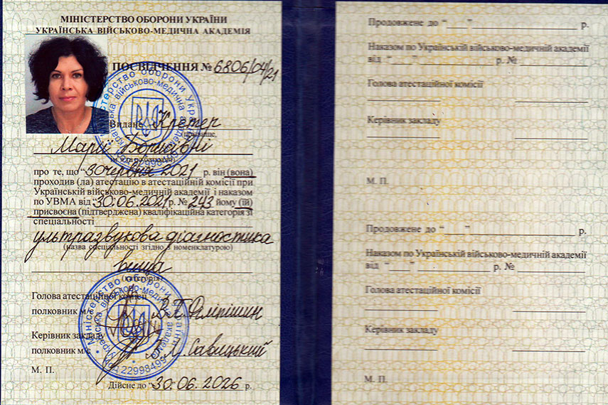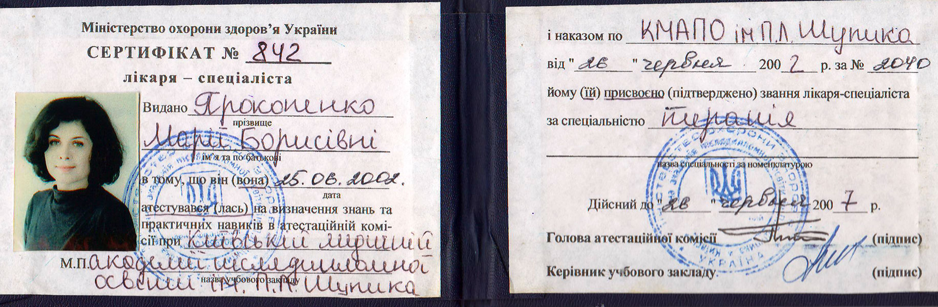 - • 2003 р. — спеціалізація з УЗД діагностики.
